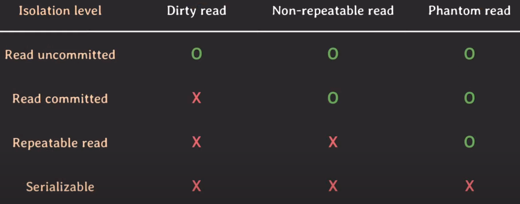 문제점 : 위의 Dirty read, Non-repeatable read, Phantom read 등 이상한 현상들이 발생하지 않게 할 순 있지만 그러면 제약사항이 많아져서 동시 처리 가능한 트랜잭션 수가 줄어들어 결국 DB의 전체 처리량이 하락하게 된다